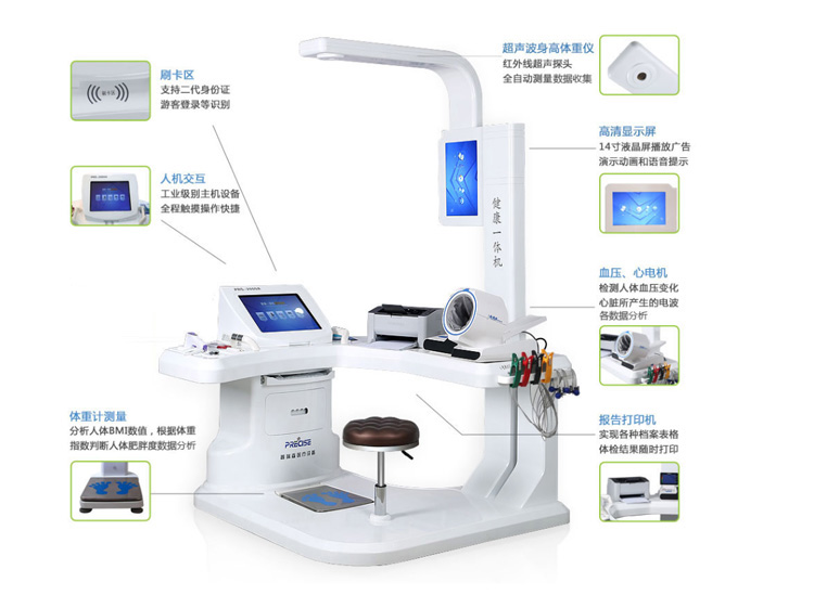 ⑤ 個性化定制:產品功能可根據需要進一步拓展、個性化定制。檢測參數可增加骨密度、肺功能、心電、血壓計等產。
