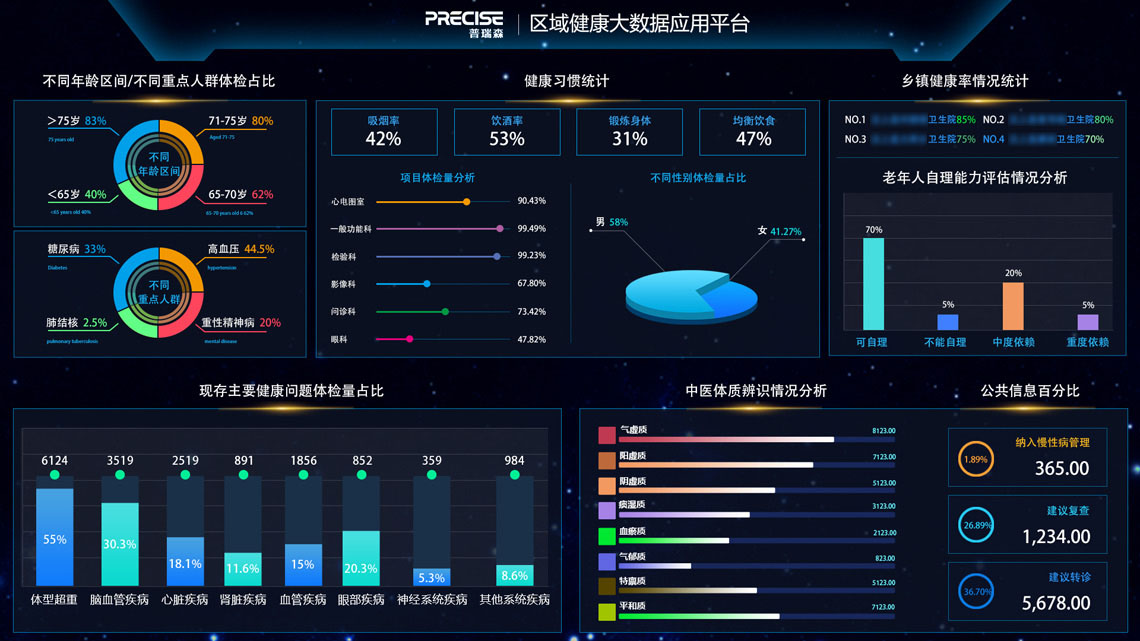 普瑞森·區域健康大數據應用平臺,由數據中臺、AI應用框架和基于大數據的智慧應用三大部分組成,通過平臺匯聚各類醫療健康數據,形成完整的大數據體系,實現基于大數據和AI的智慧應用創新,賦能輔政、助醫、惠民和惠業。